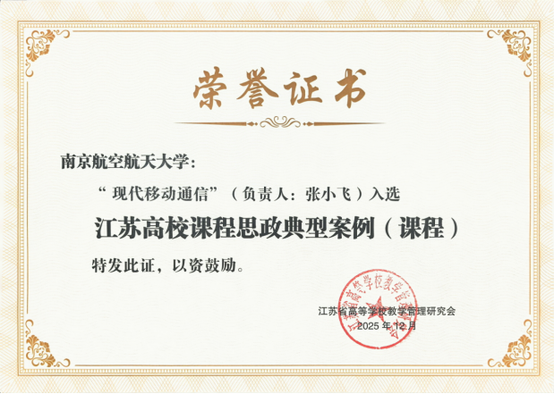 近日,江苏省高等学校教学管理研究会、课程思政建设工作委员会公布了2025年江苏普通本科高校课程思政典型案例入选名单。我院本科课程《现代移动通信》成功入选“2025年江苏高校课程思政典型案例(课程)”。
